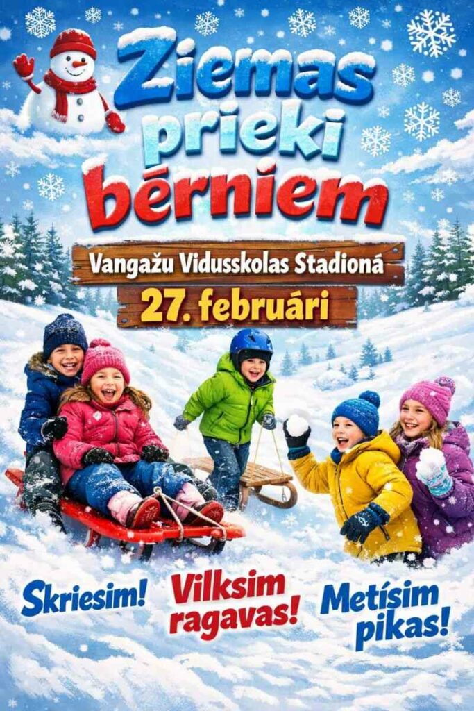 Vangažu Sporta centrs aicina 27. februārī piedalīties pasākumā “Ziemas prieki”