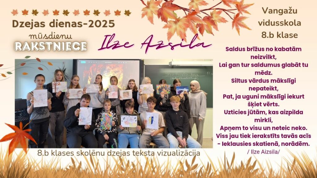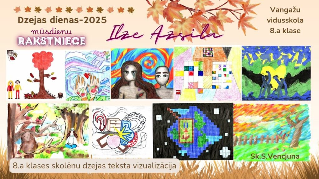 Paldies 8.-10.klašu skolēniem par dzejas analizēšanu, vizualizēšanu dažādos mākslas virzienos.