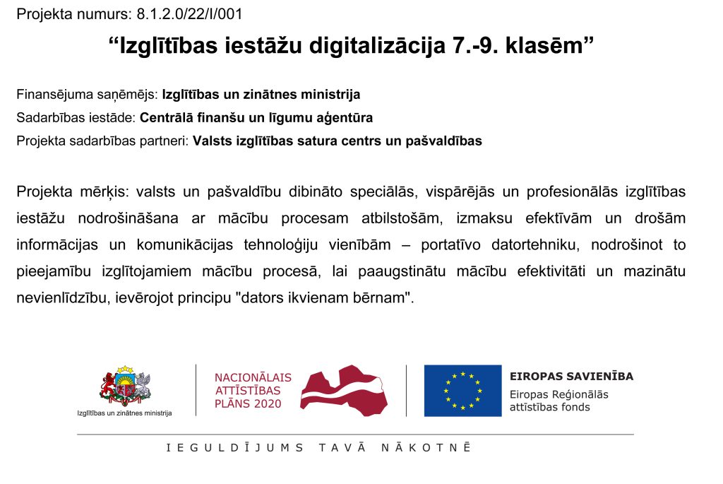 ESF projekts “Izglītības iestāžu digitalizācija 7.-9. klasēm”