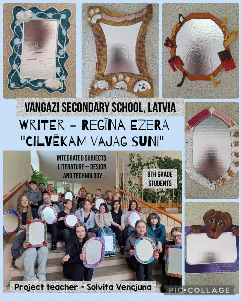 Šoreiz literatūra un tehnoloģijas satikās ne tikai lasot, bet arī radoši radot! Skolēni izlasīja R.Ezeras „Cilvēkam vajag suni” un iedvesmojās no grāmatas tēmas, lai veidotu savus unikālus spoguļa rāmjus – katrs no tiem atspoguļoja cilvēka un suņa attiecības, kas bija galvenā ideja grāmatā. (starptautiskā projekta “The Writer in the Mirror of the Era” aktivitāte).
