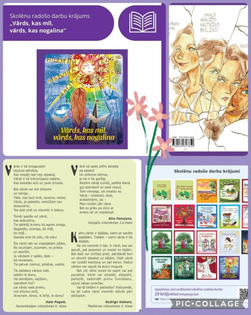 2021./2022. mācību gadā latviešu valodas skolotāja Solvita Vencjuna nosūtīja mūsu skolas bērnu darbus radošam konkursam par Latviju, ko organizēja Latviešu valodas aģentūra. 3 skolēnu darbi ir iespiesti grāmatā. Lukass ir 14. lpp. Marta ir 67. lpp. Roberts ir 74. lpp.