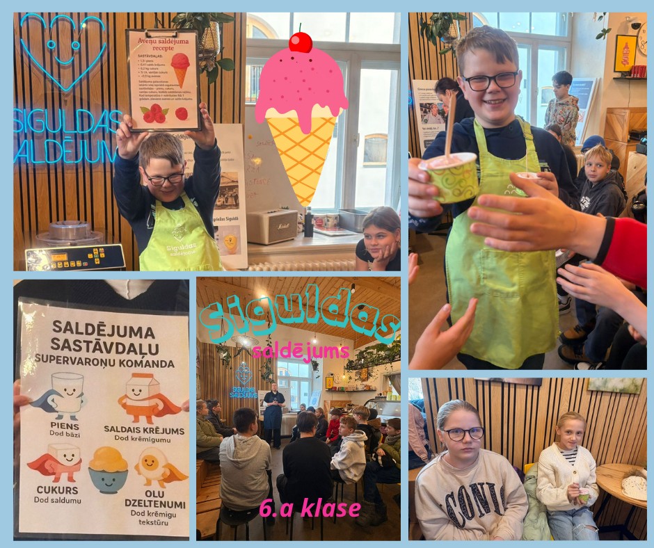 Nodarbībā “Siguldas saldējums STEM” skolēni uzzināja par saldējuma vēsturi, analizēja sastāvdaļas, pētīja recepti un vēroja gatavošanas procesu.