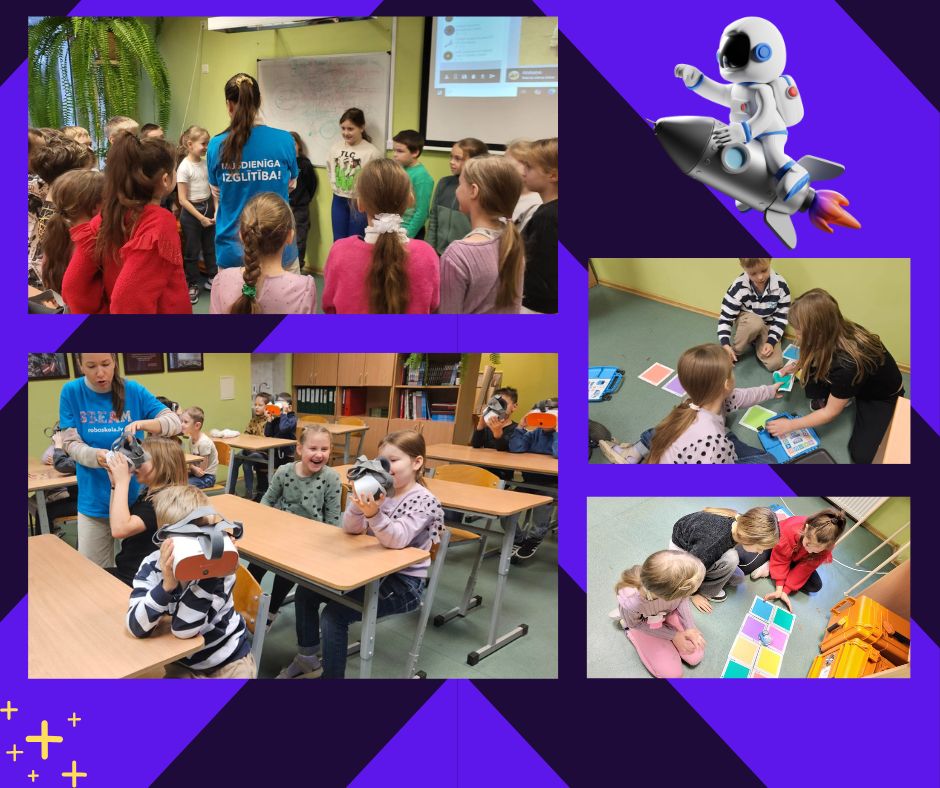 17. decembrī STEM un pilsoniskās līdzdalības ESF projekta ietvaros 1.a, 1.b, 2.b, 3.a, 3.b klašu skolēni piedalījās nodarbībā “Ceļojums Kosmosā”. Skolēni ar VR brillēm iepazina Saules sistēmu, pētīja planētas un izzināja dzīvībai nepieciešamos apstākļus. Izglītojoša un aizraujoša pieredze!